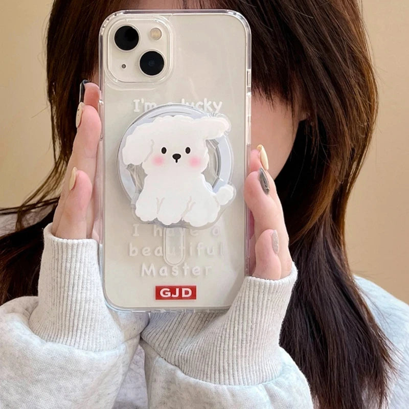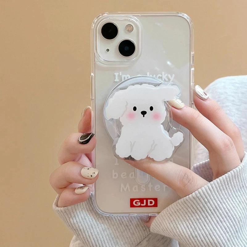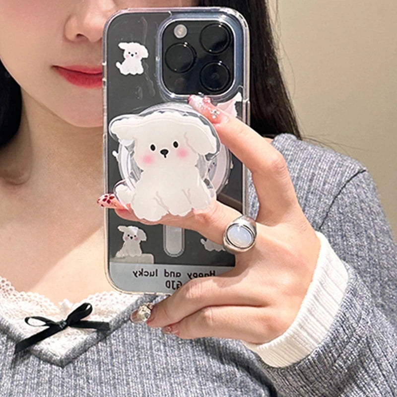 【スマホグリップ】ワンちゃん ホワイトドッグ | Magnet対応 #241117