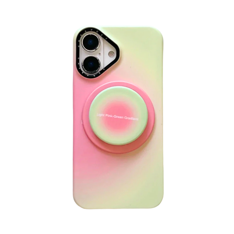 淡いピンクからミントへ溶け合うグラデーションが手元をやさしく彩るケース。