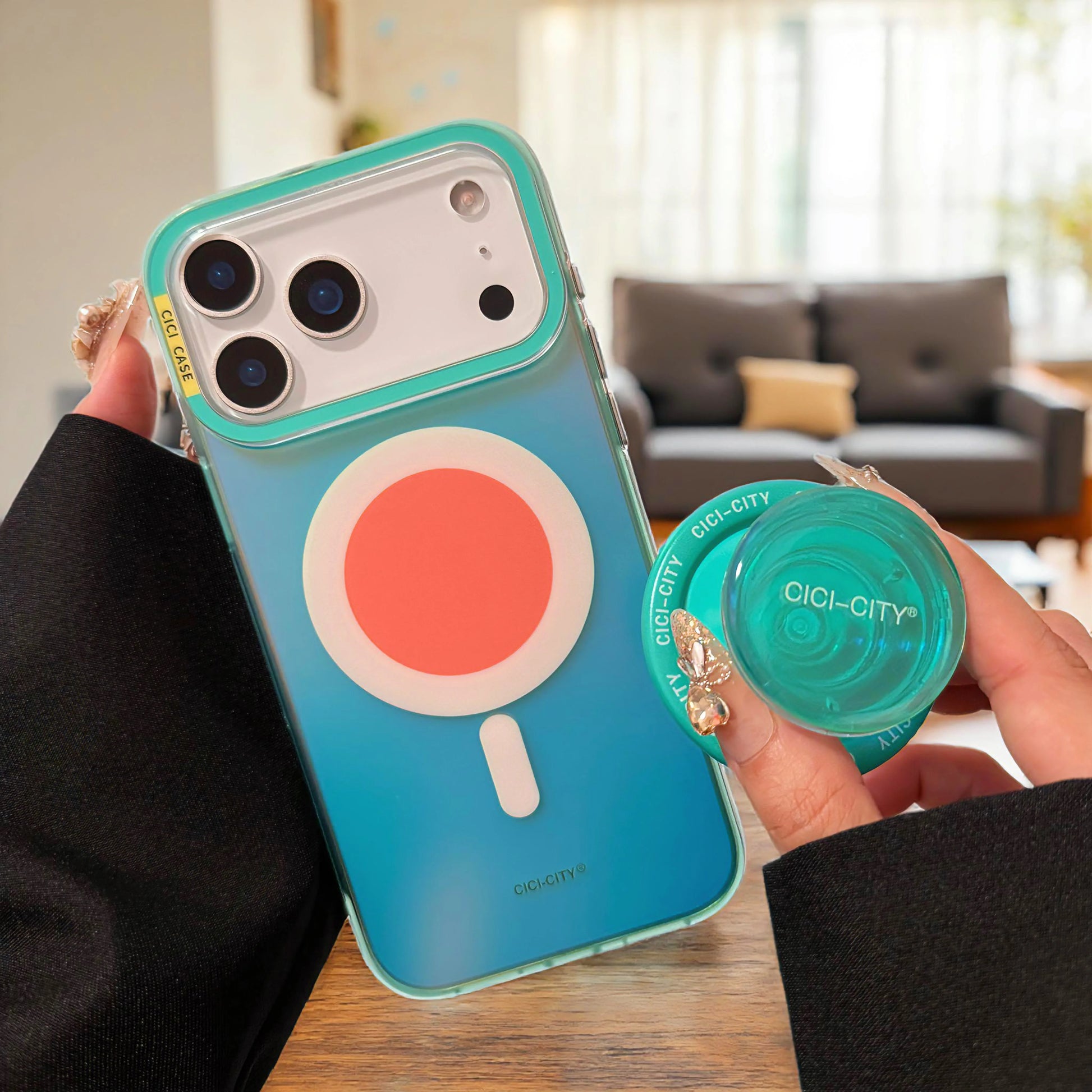 【Magnet内蔵】ネオン グラデーションカラー TPU 耐衝撃 おしゃれ ビビッドカラー グリップ付き スマホケース|iPhone対応 #251230