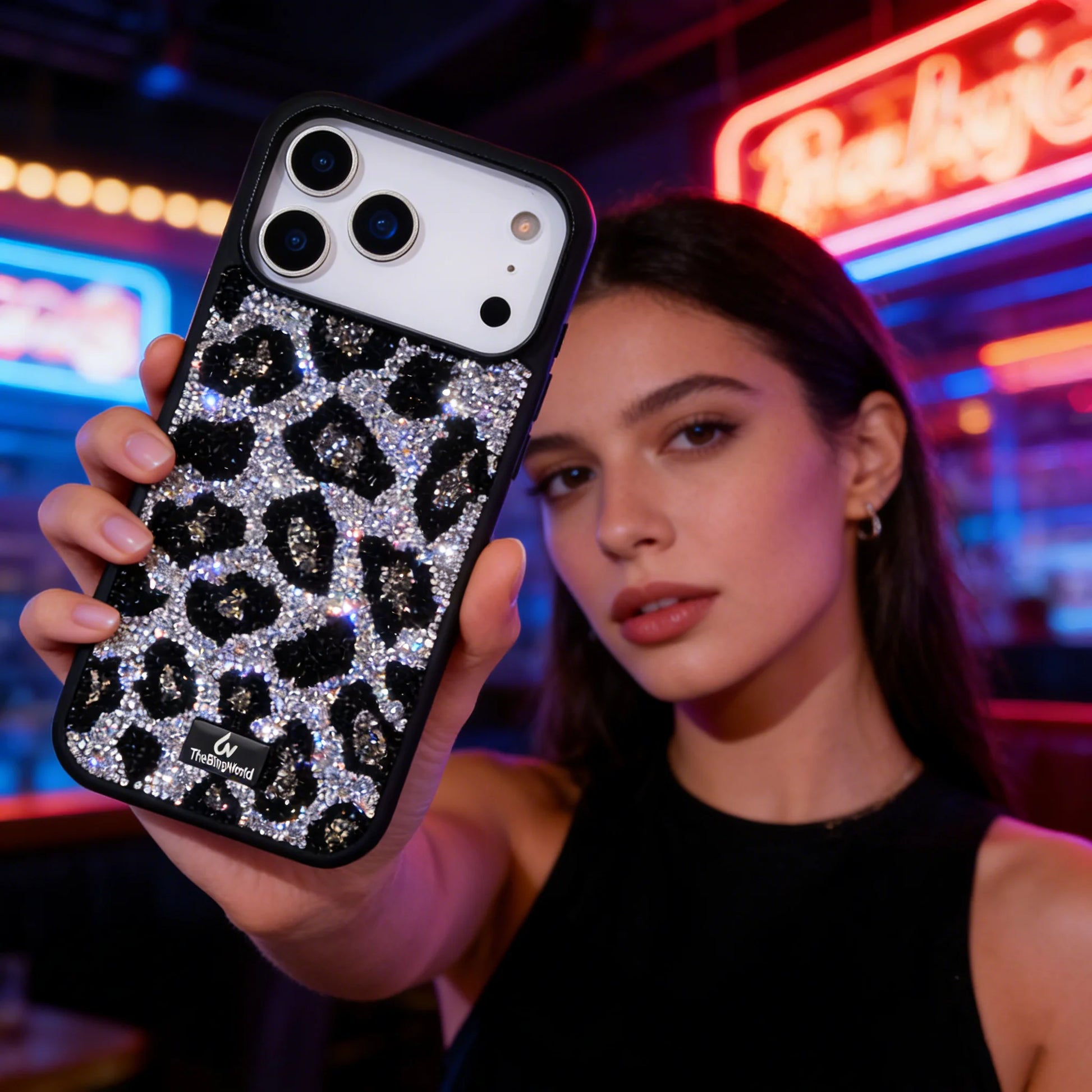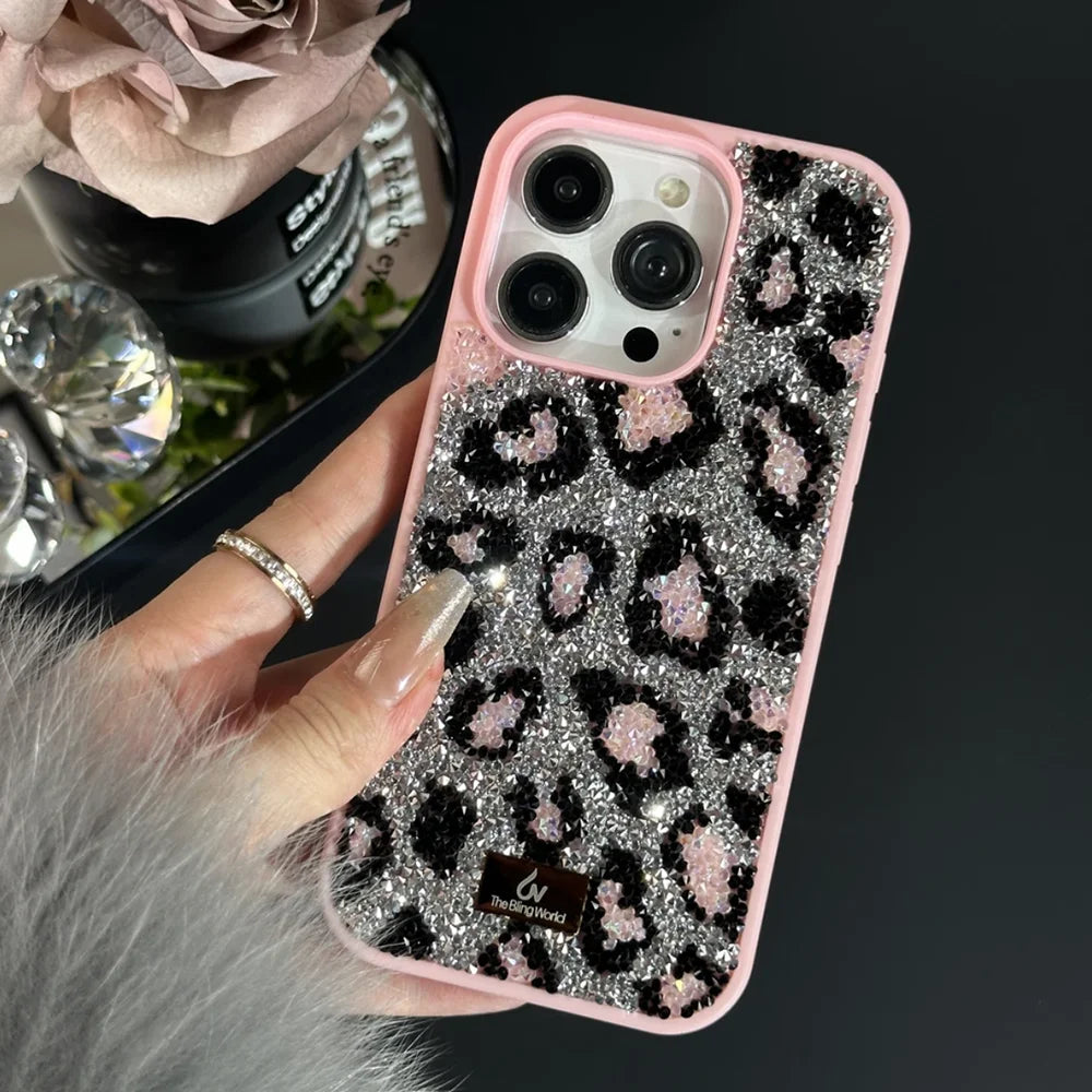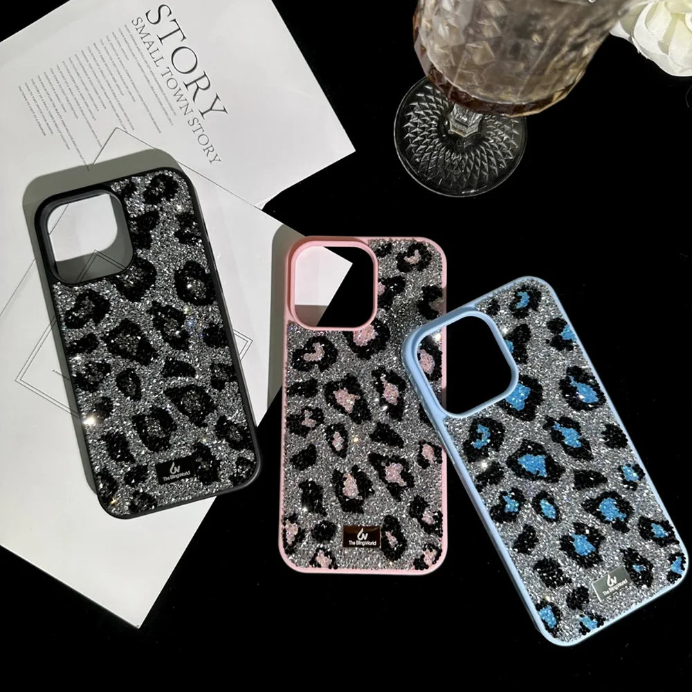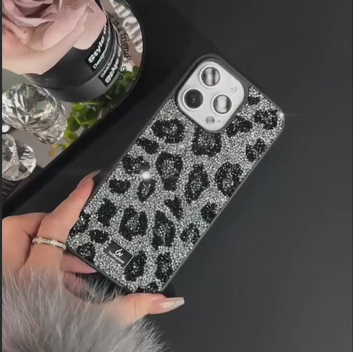 【キラキラビジューシリーズ】フルラインストーン ヒョウ柄 レオパード グリッター デコ スマホケース|iPhone対応 #260113