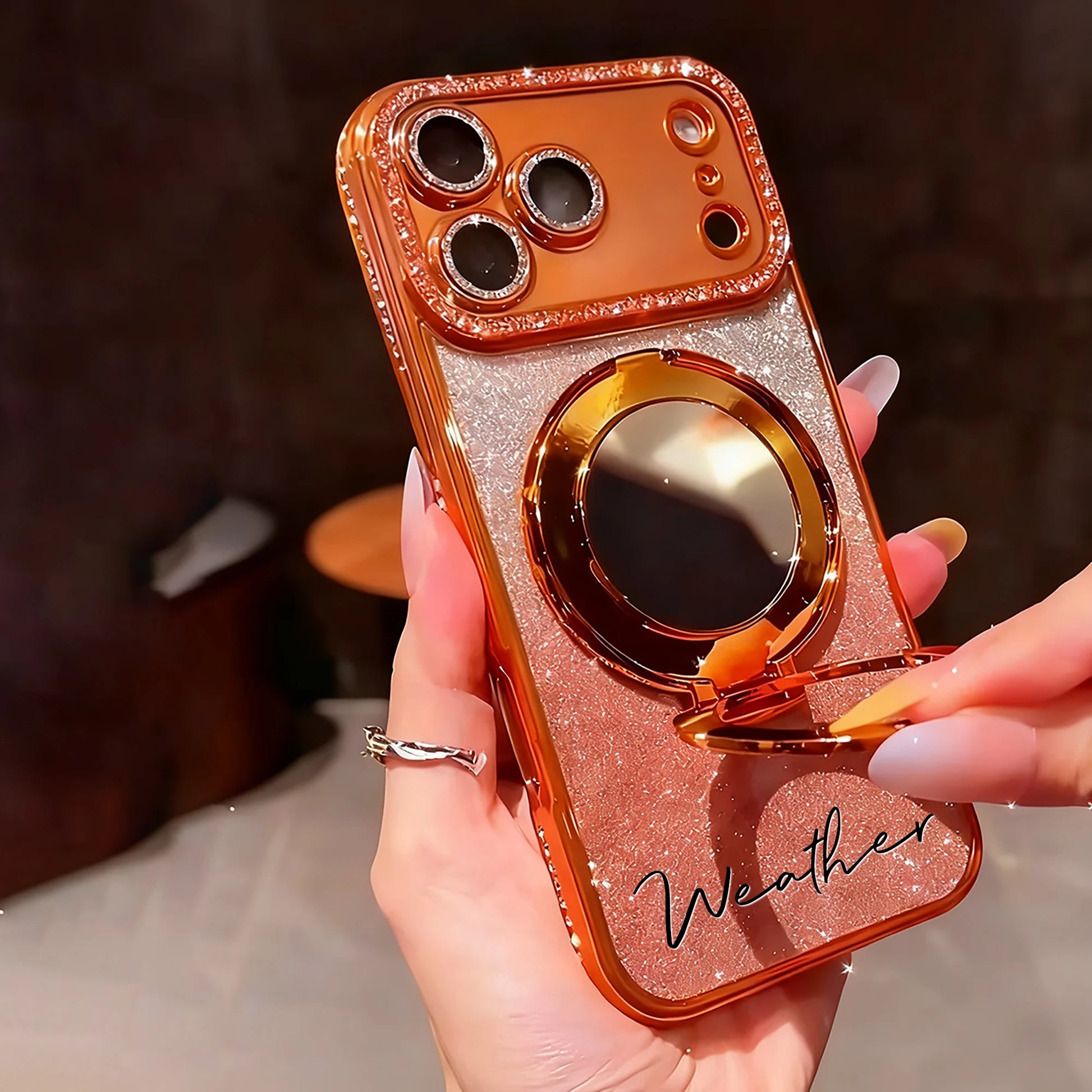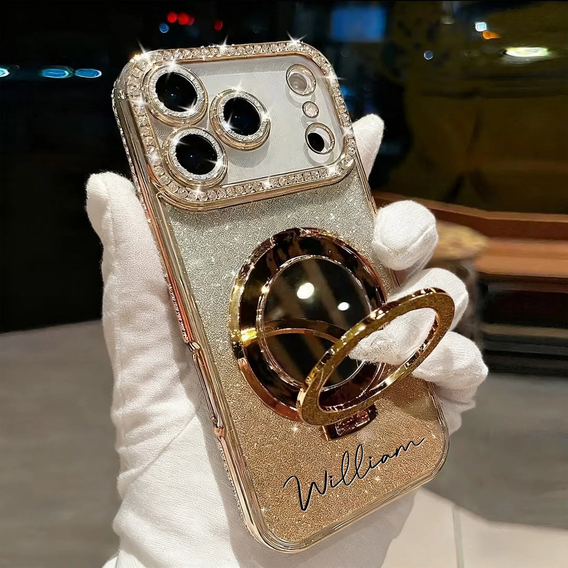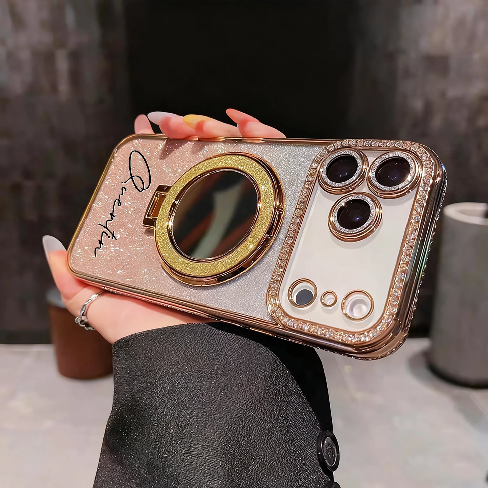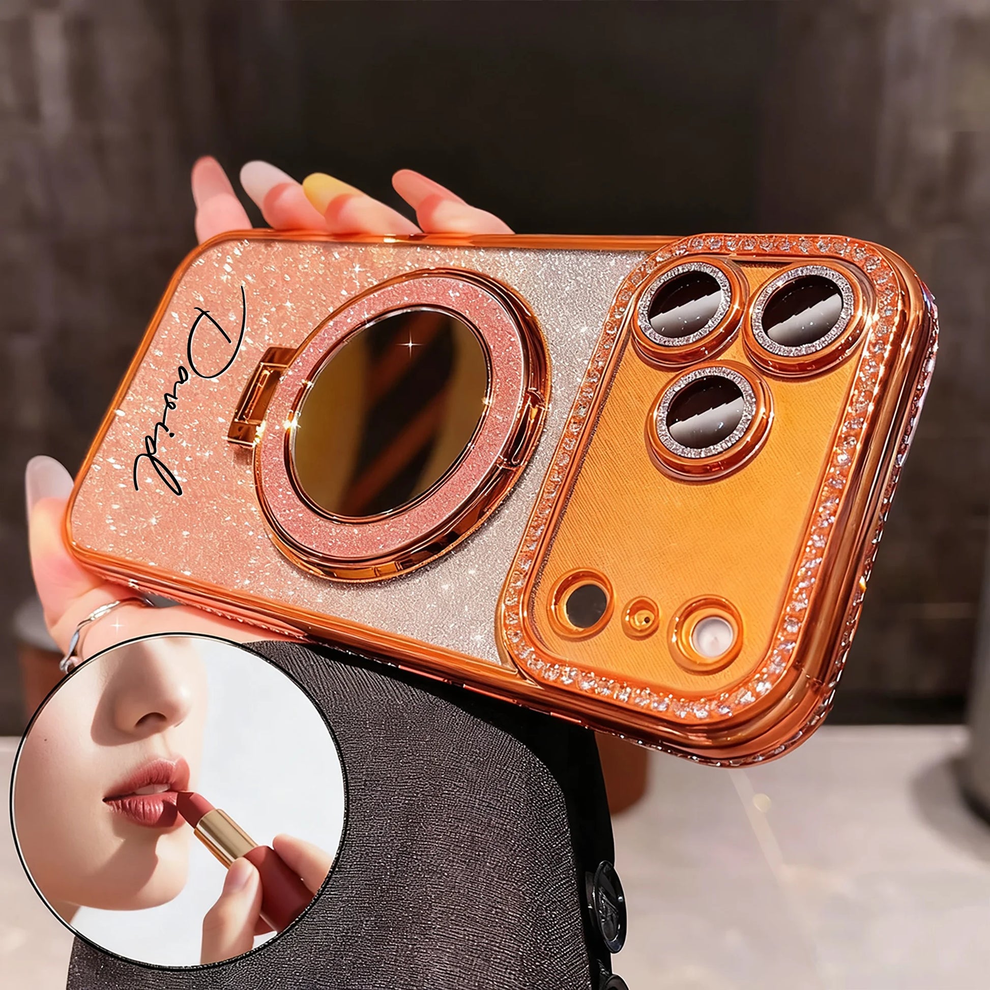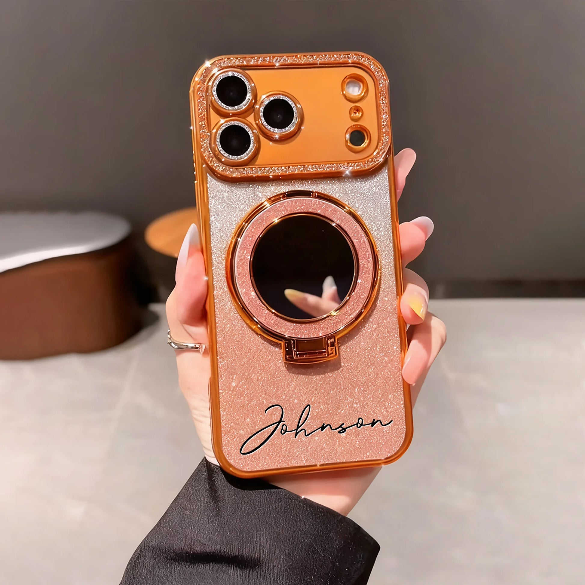【カスタムシリーズ】名入れ リングスタンド ミラー付き iPhoneケース|ラメグラデ #260216