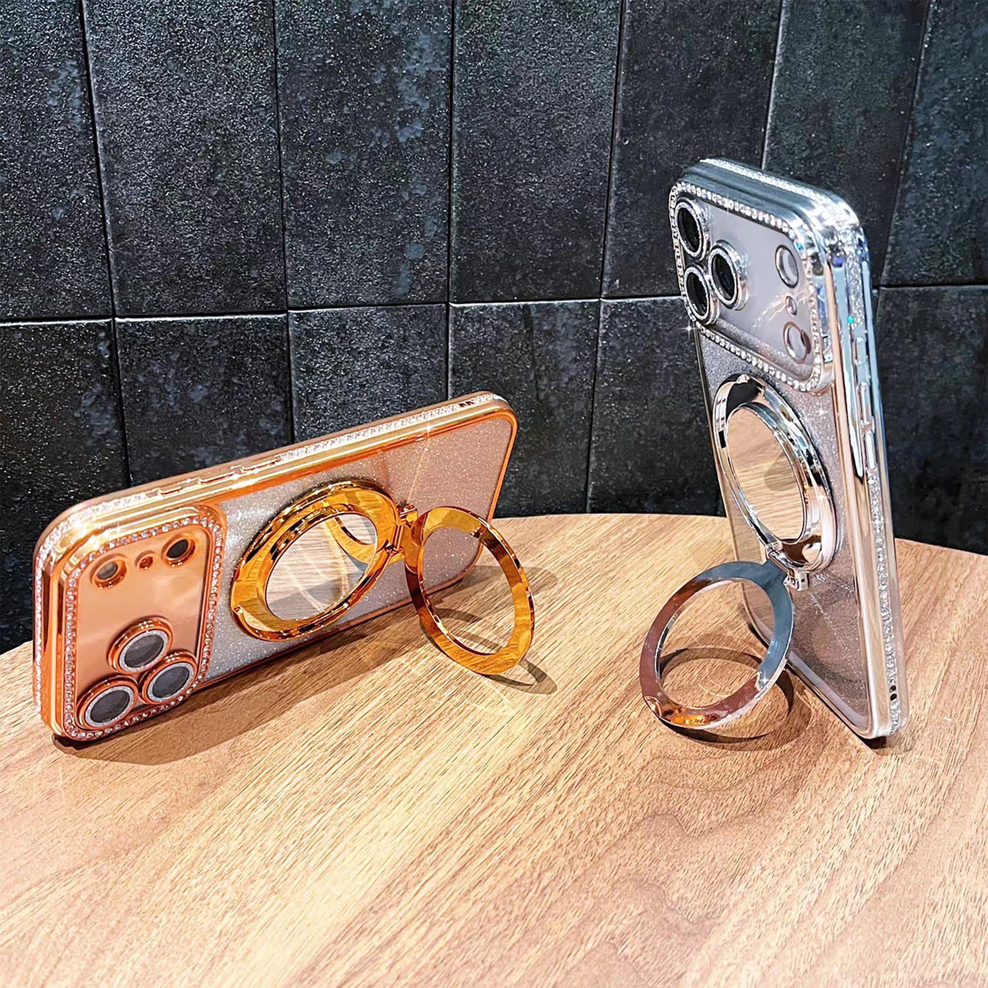 きらっと輝くラメ素材に、名前をカスタムできるリング付きiPhoneケース。