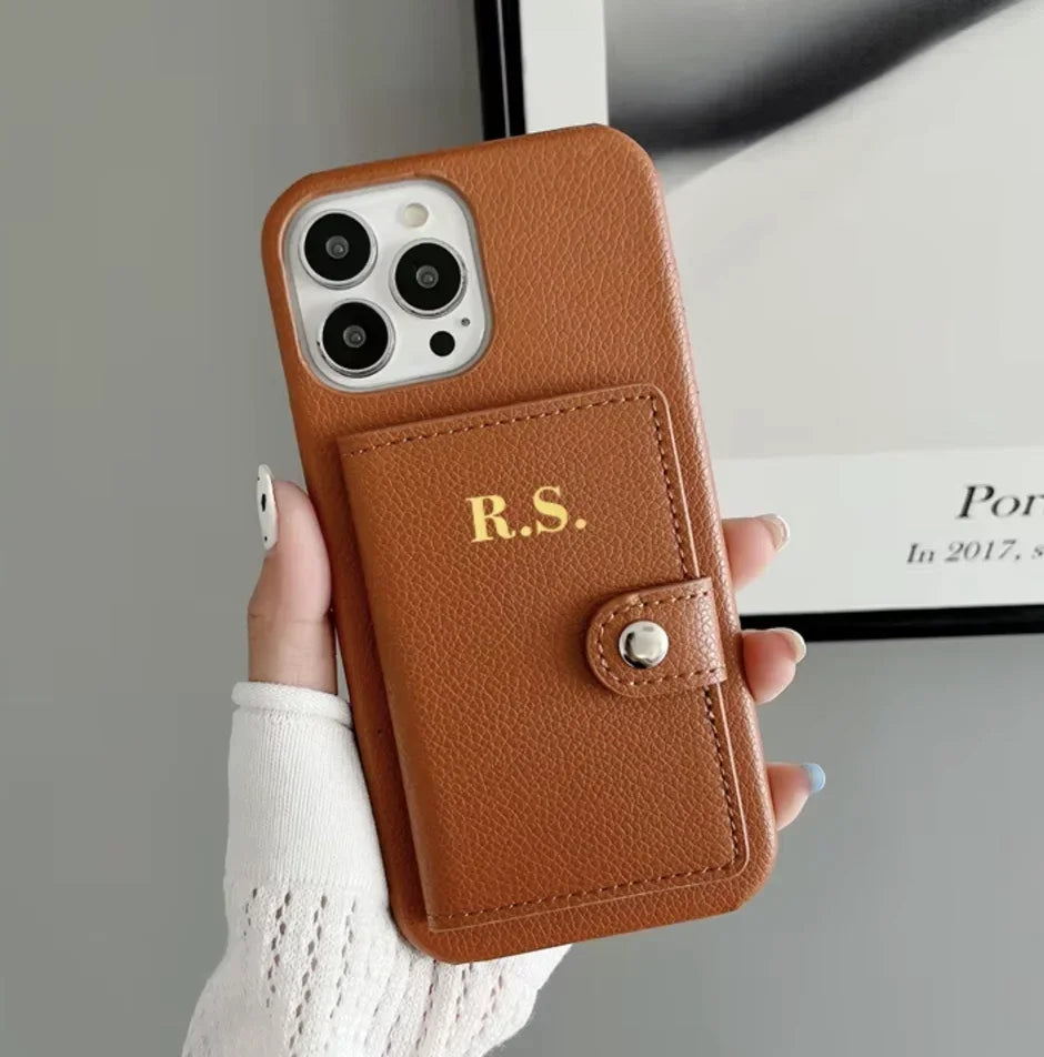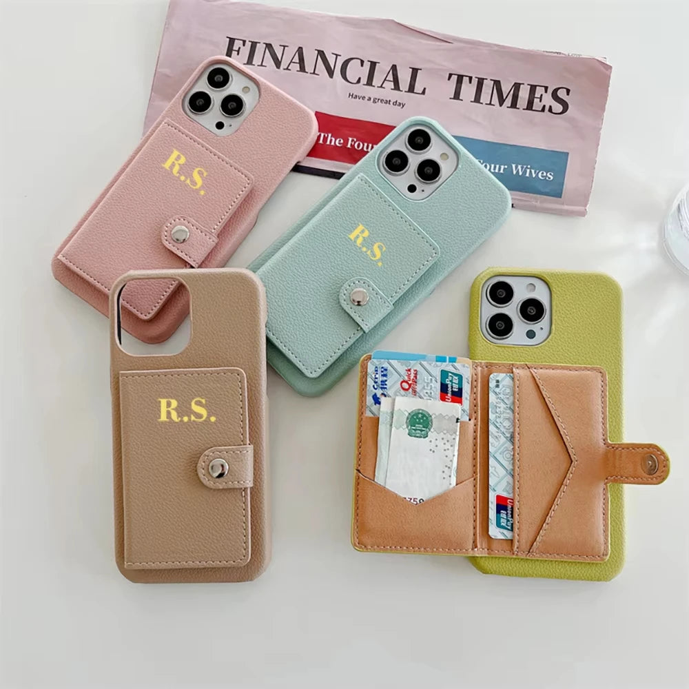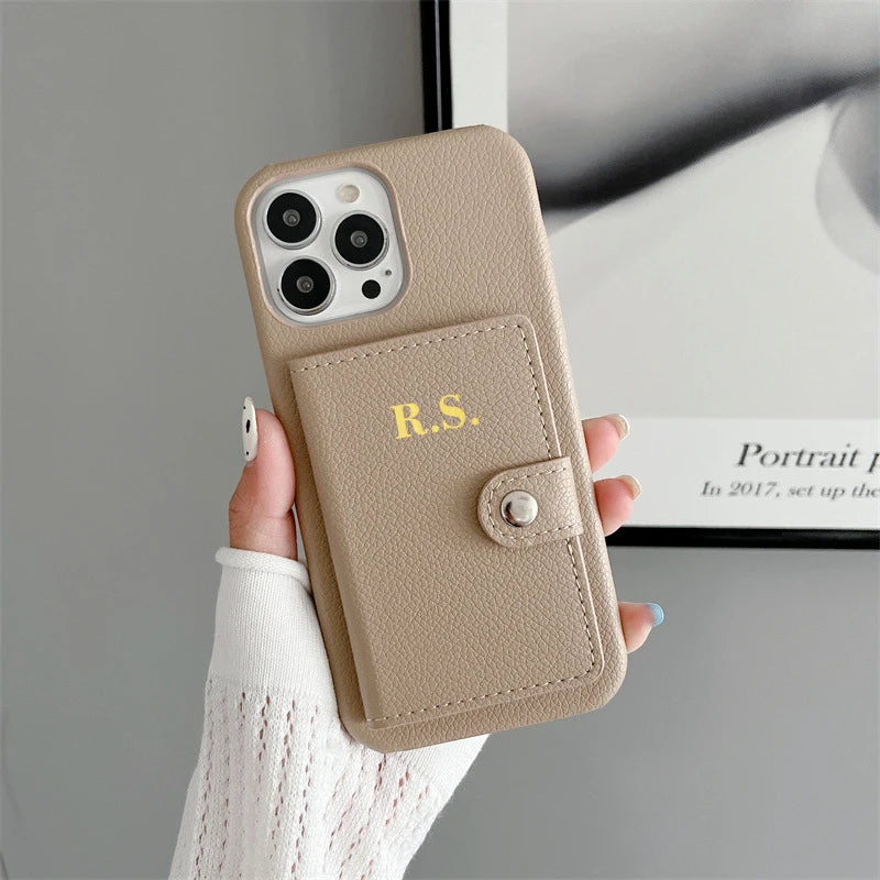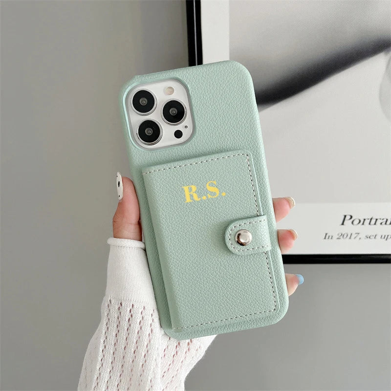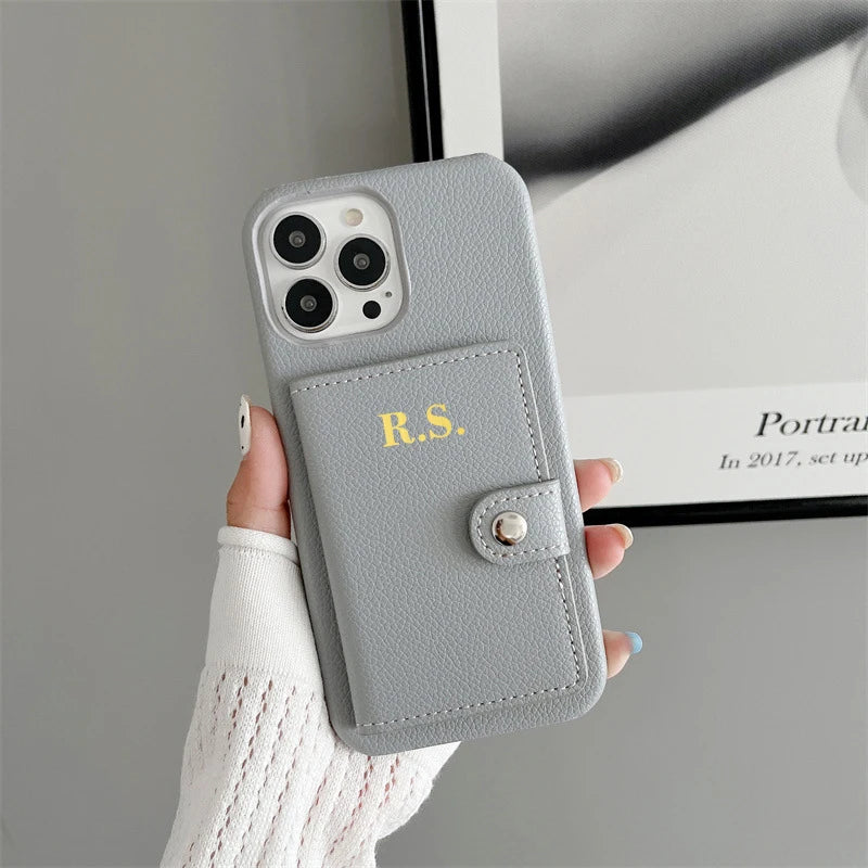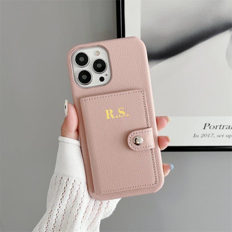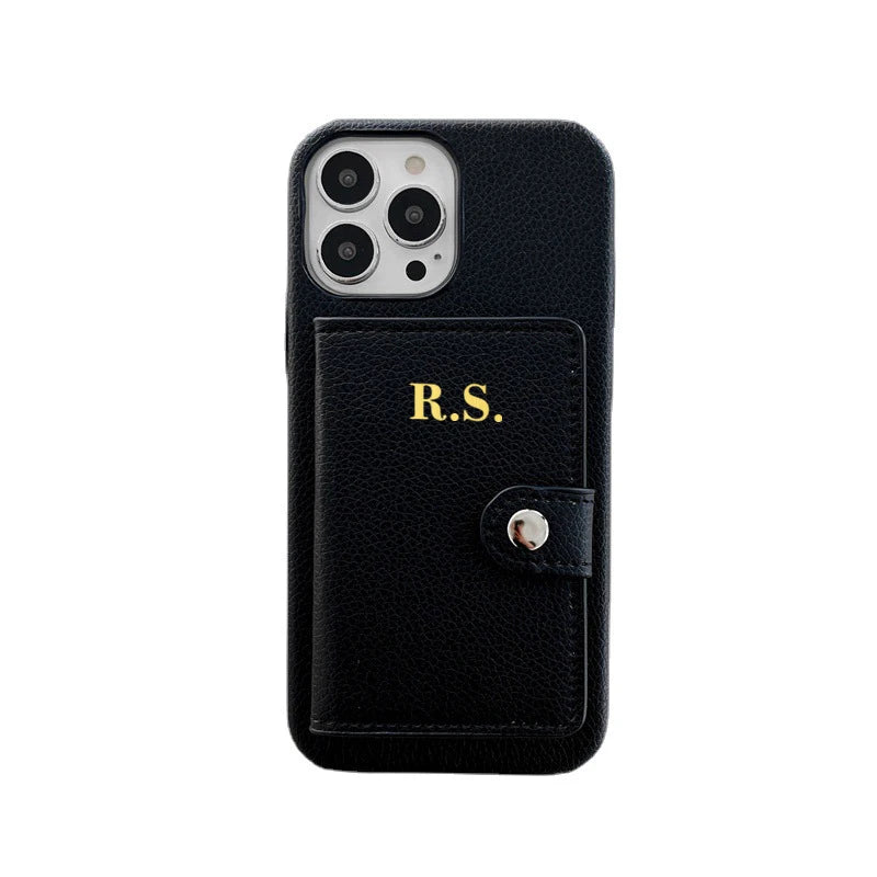 【カスタムシリーズ】名入れ イニシャル カード収納 ウォレット レザー調 iPhoneケース #260217