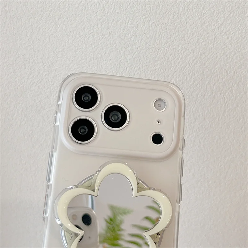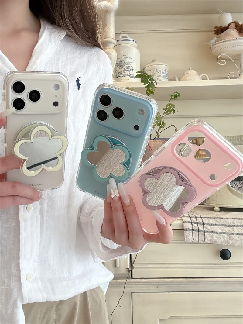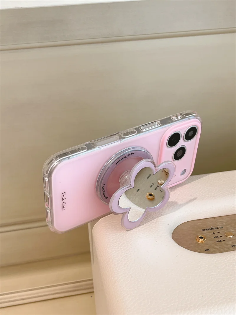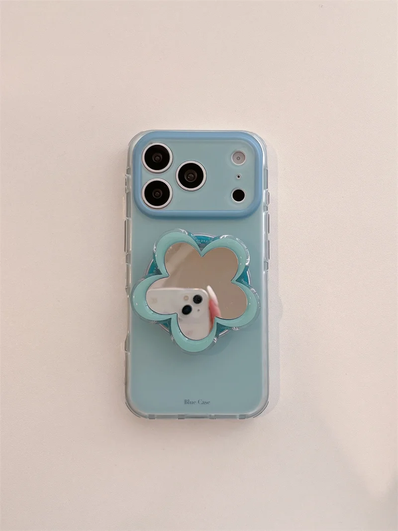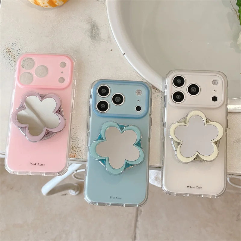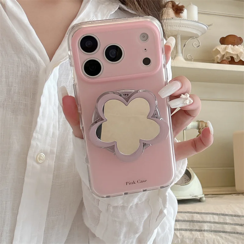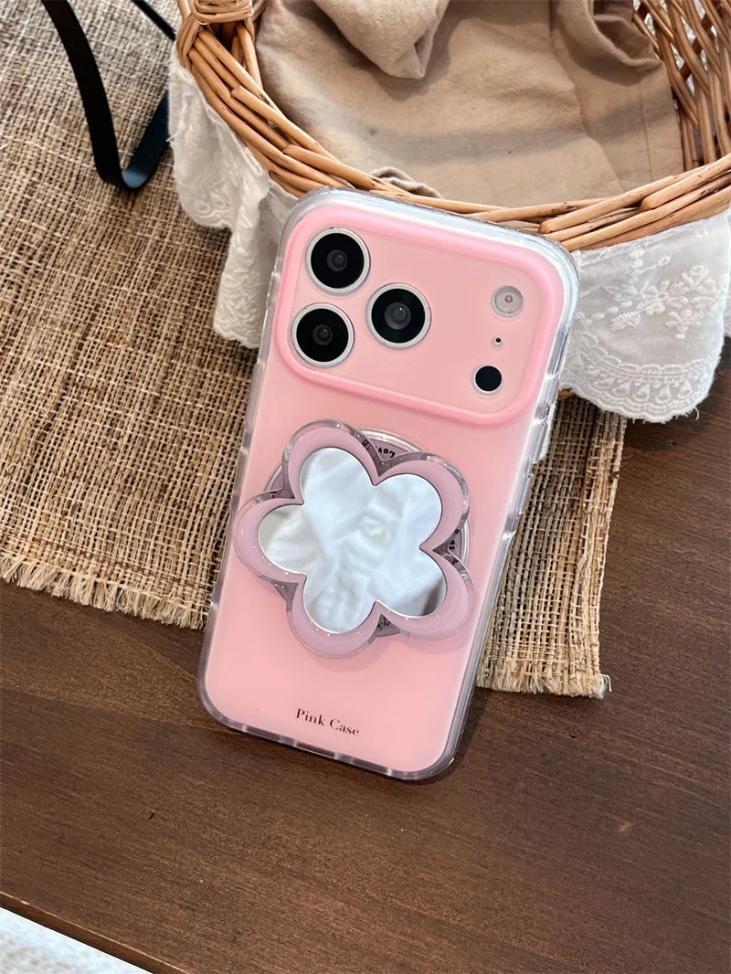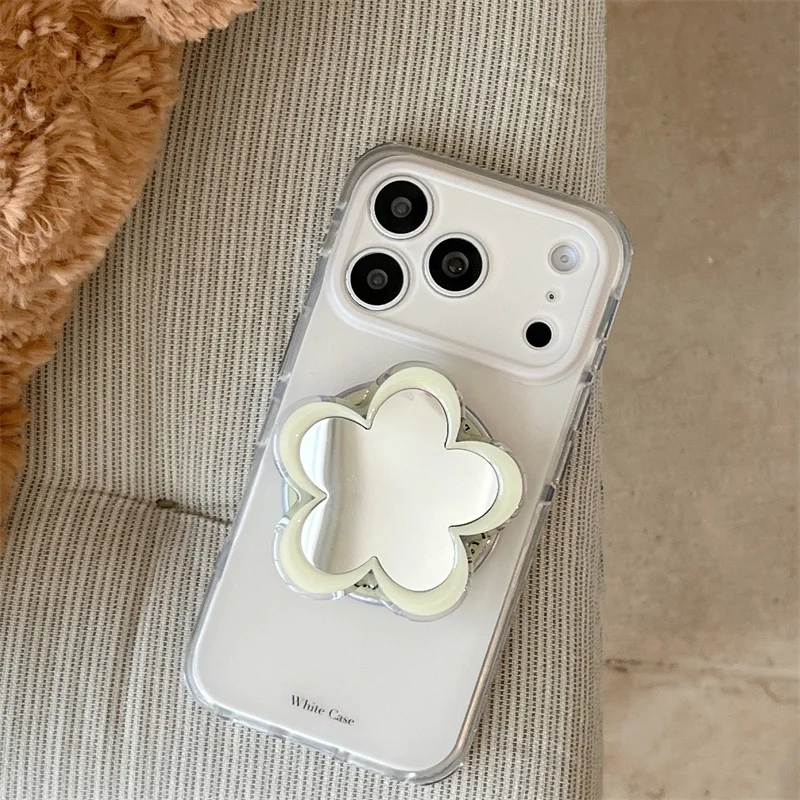 お花モチーフのミラー付きグリップが特徴のiPhoneケース。