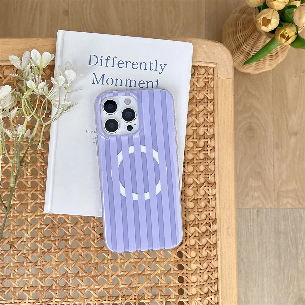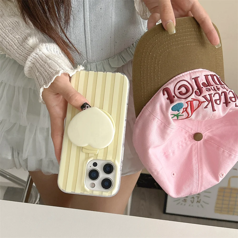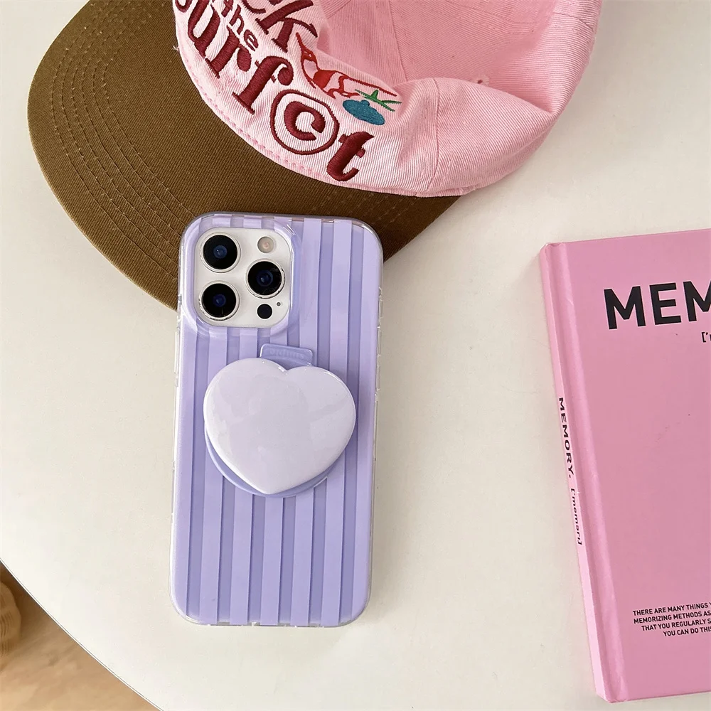 立体的なハートグリップがポイントのストライプデザインケース。