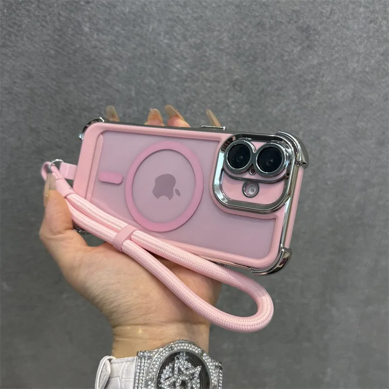 【Magsafe対応】メタリックフレーム クリアカラー × ストラップ付き スマホケース|iPhone対応 #250228