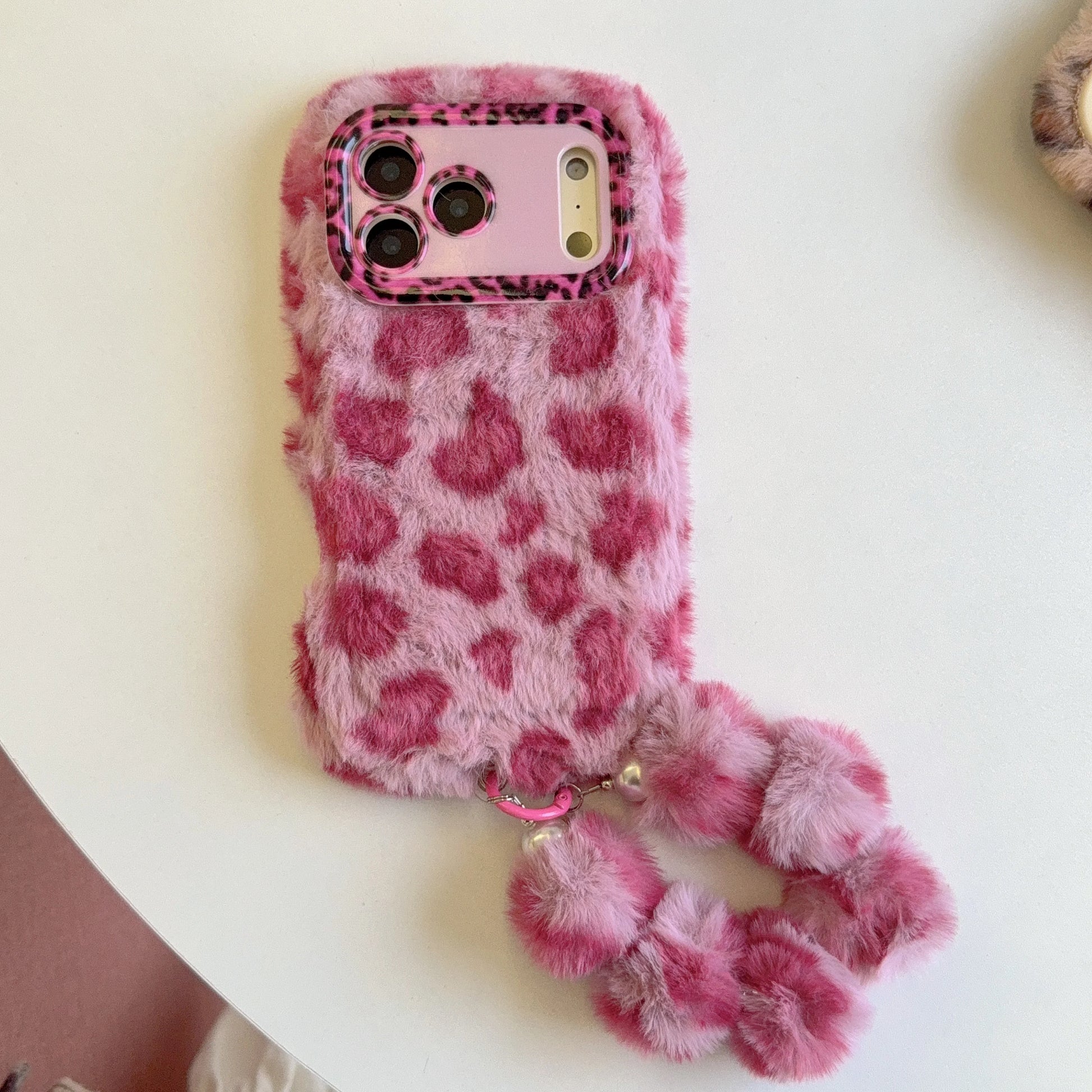 【レオパードファーポンポン】もこもこ アニマル ヒョウ柄 × ふわふわチャーム スマホケース|iPhone対応 #250104